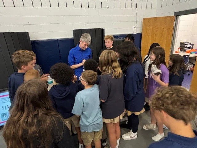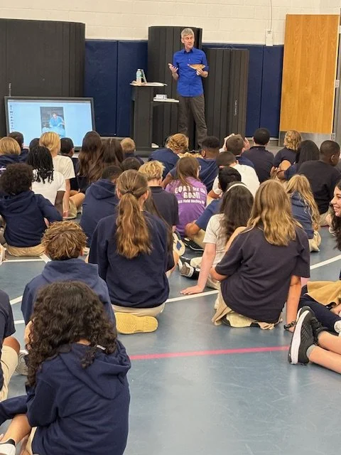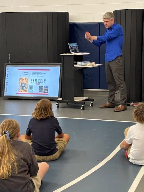 HBF Authors in Schools Program: Sam Kean at Sussex Academy Middle School in 2025, funded by Delmarva Power, an Excelon Company. Thank you!